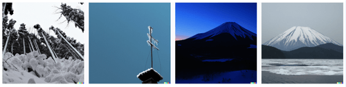 When cold is entered in Japanese as “冷たい”, what we got is mainly scenery views of landscape covered with snow, most often is the Mountain Fuji. The style of these seems to be much less realistic compared to the English version, resonating with the style of Japanese woodblock printing.