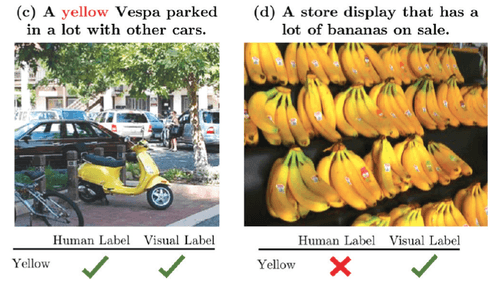 Researcher Margaret Mitchell and colleagues, in “Seeing through the Human Reporting Bias” (2016), posits that “it is the words that are not spoken that encode the bias.” For example, people say “green bananas” but not “yellow bananas” because yellow is implied as the default color of the banana. Similarly, people say “woman doctor” but do not say “man doctor.” (D'Ignazio, Klein, 2020)