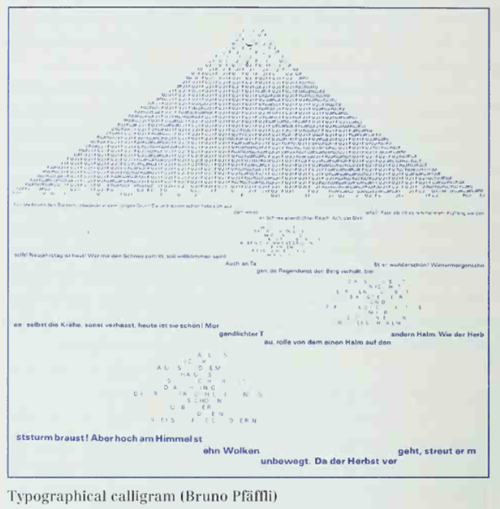 It is not just me feeling this way. To unleash the pictorial potential from the mechanical use of words in a rigid rectangular box, graphic designer Bruno Pfäffli composed this poem in a textbox to break through the hard, conventional grid of typesetting.